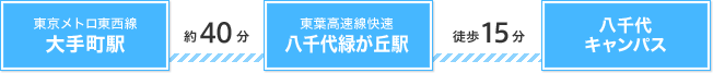 - 八千代緑ヶ丘駅下車後、徒歩で八千代キャンパスへ(約15分)