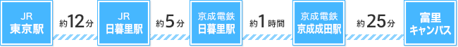 - JR東京駅からJR日暮里駅へ(約12分)