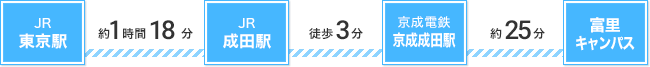 - 京成成田駅よりスクールバスで富里キャンパスへ(約25分)