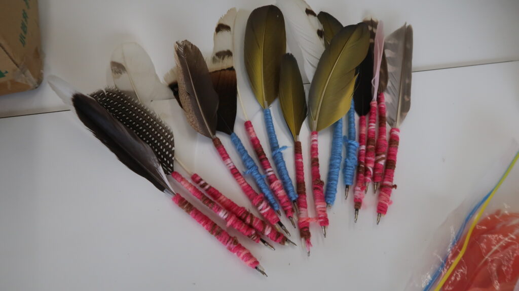 富里キャンパスの動物たちの落とし物を、学生さんたちが少し工夫して、素敵な羽ペンに変身~