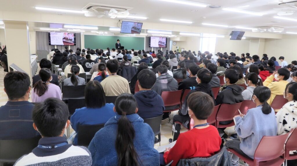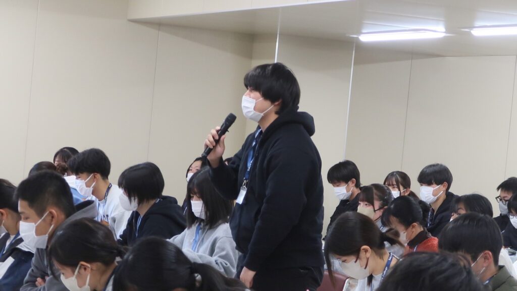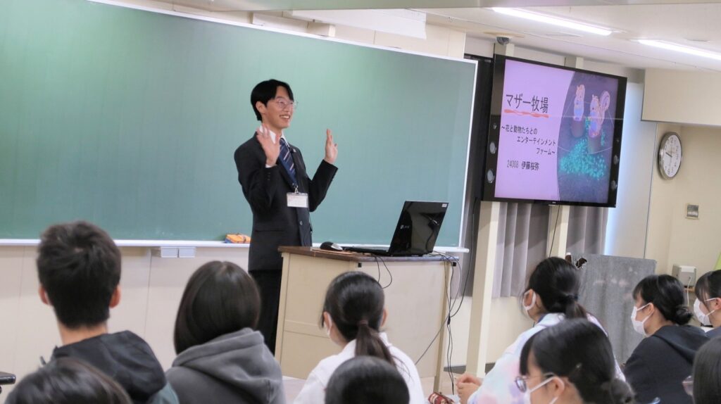 2年生は13分間のプレゼンを行います。スライドを使い、どうして、その施設を選んだのか、どういった業務を行ったのかなど。全学生が参加して、発表会をみんなで聞きます。